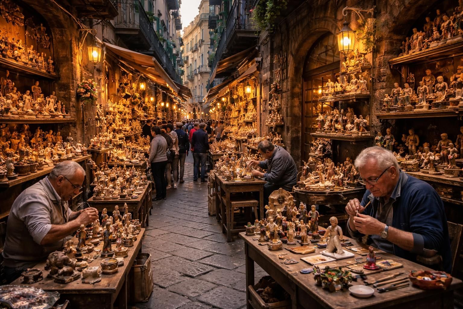 La via San Gregorio Armeno a su se valoriser en tant qu’espace vivant de tradition artisanale, où l’art des crèches napolitaines trouve sa pleine expression. Les artisans, souvent de génération en génération, transmettent leur savoir-faire, garantissant ainsi la pérennité de cette riche culture. Les hommes et les femmes qui se consacrent à cette pratique ne se contentent pas d’être des créateurs, ils sont également les gardiens d’une histoire qui se traduit par la passion de leur art.
